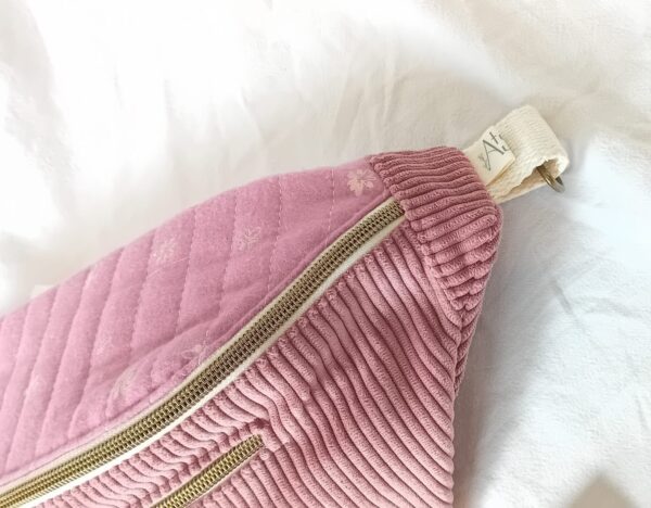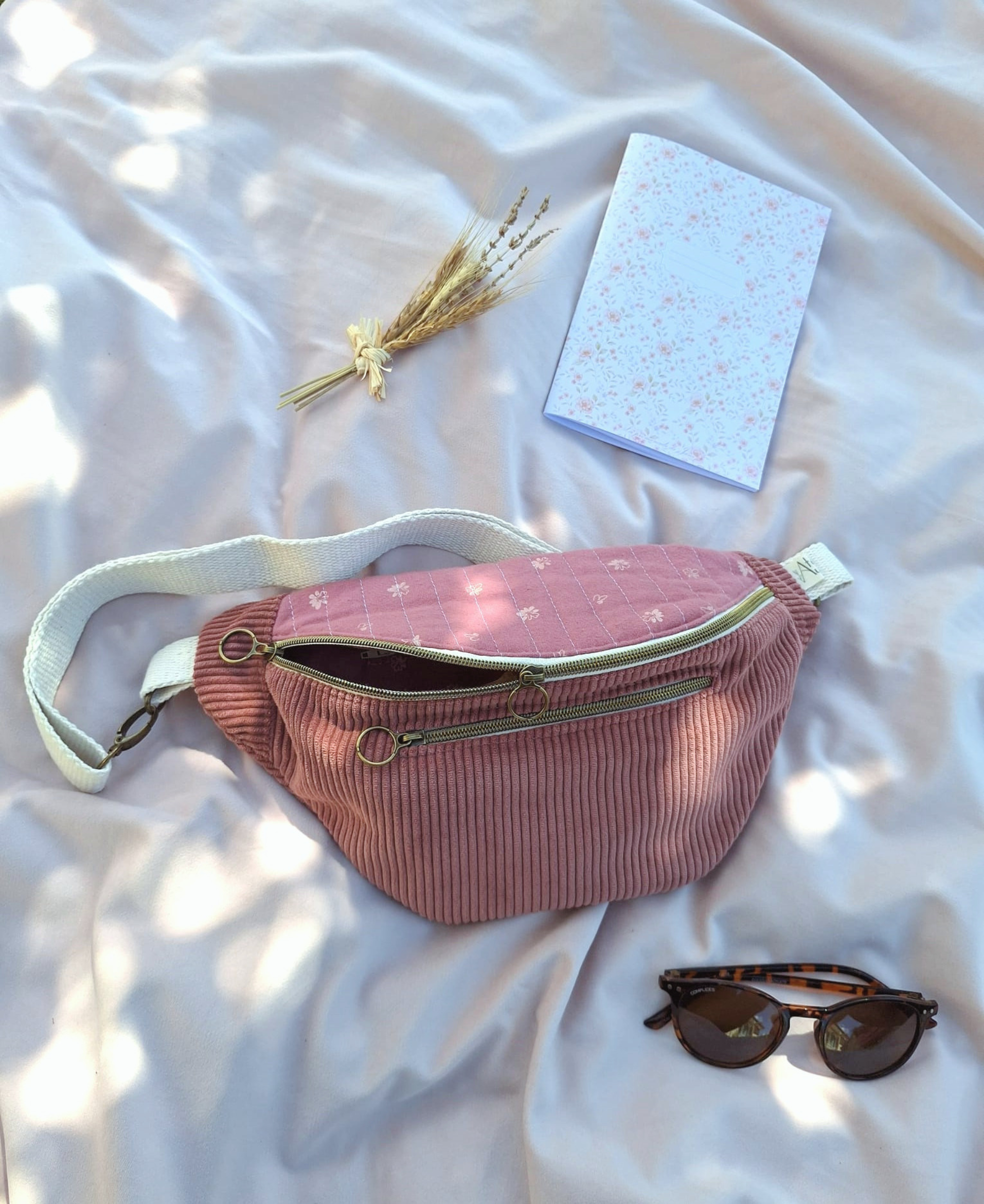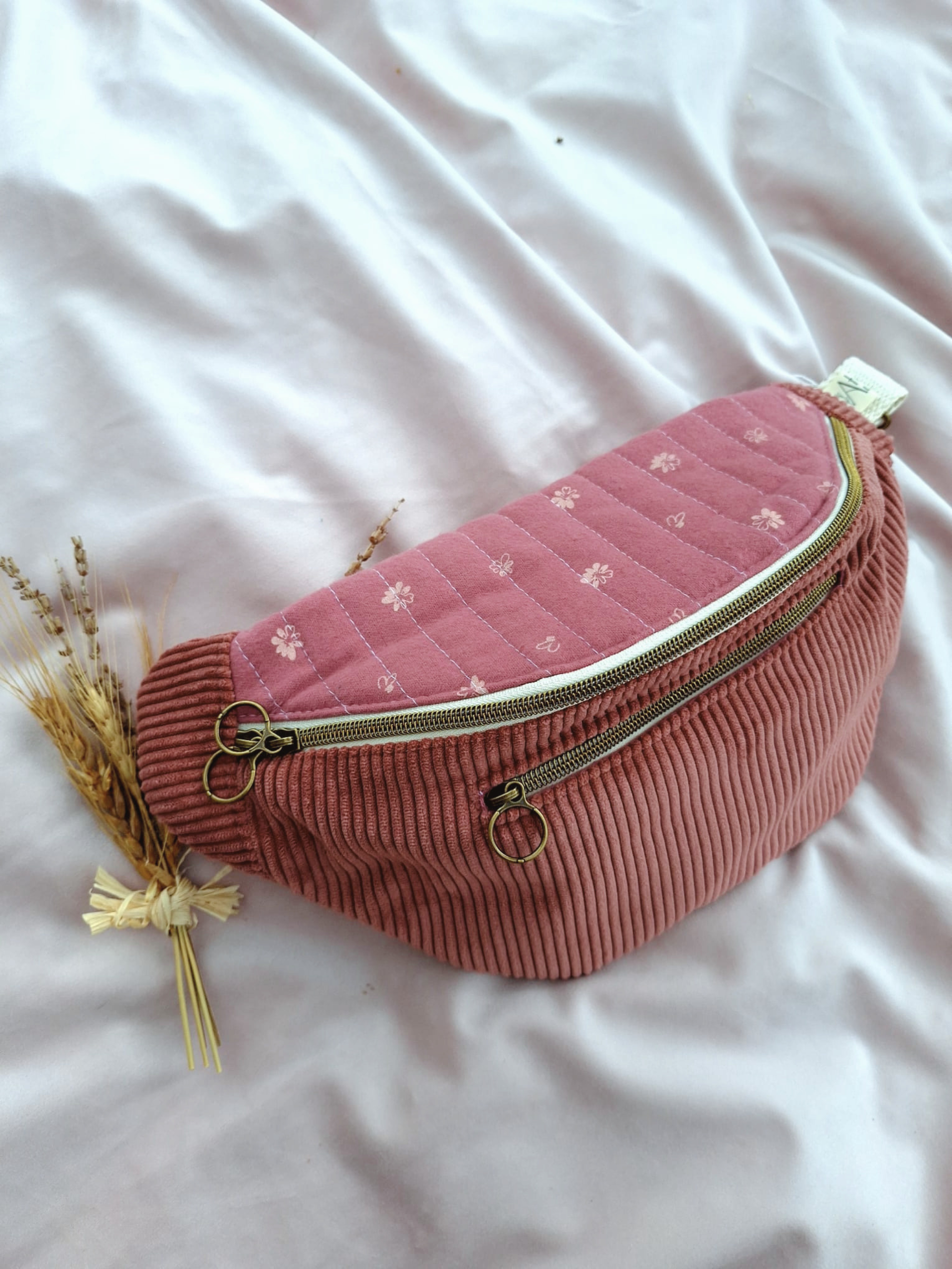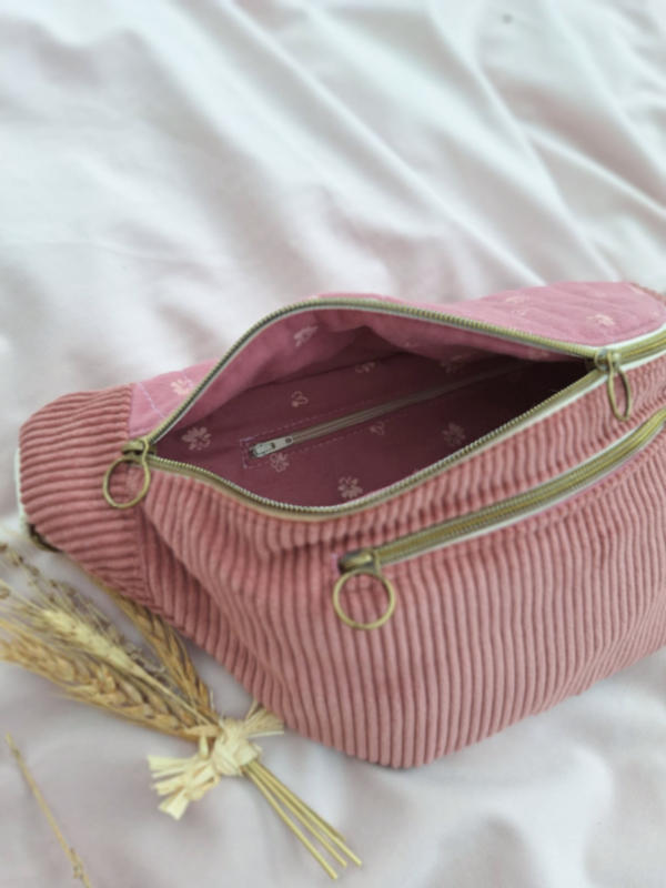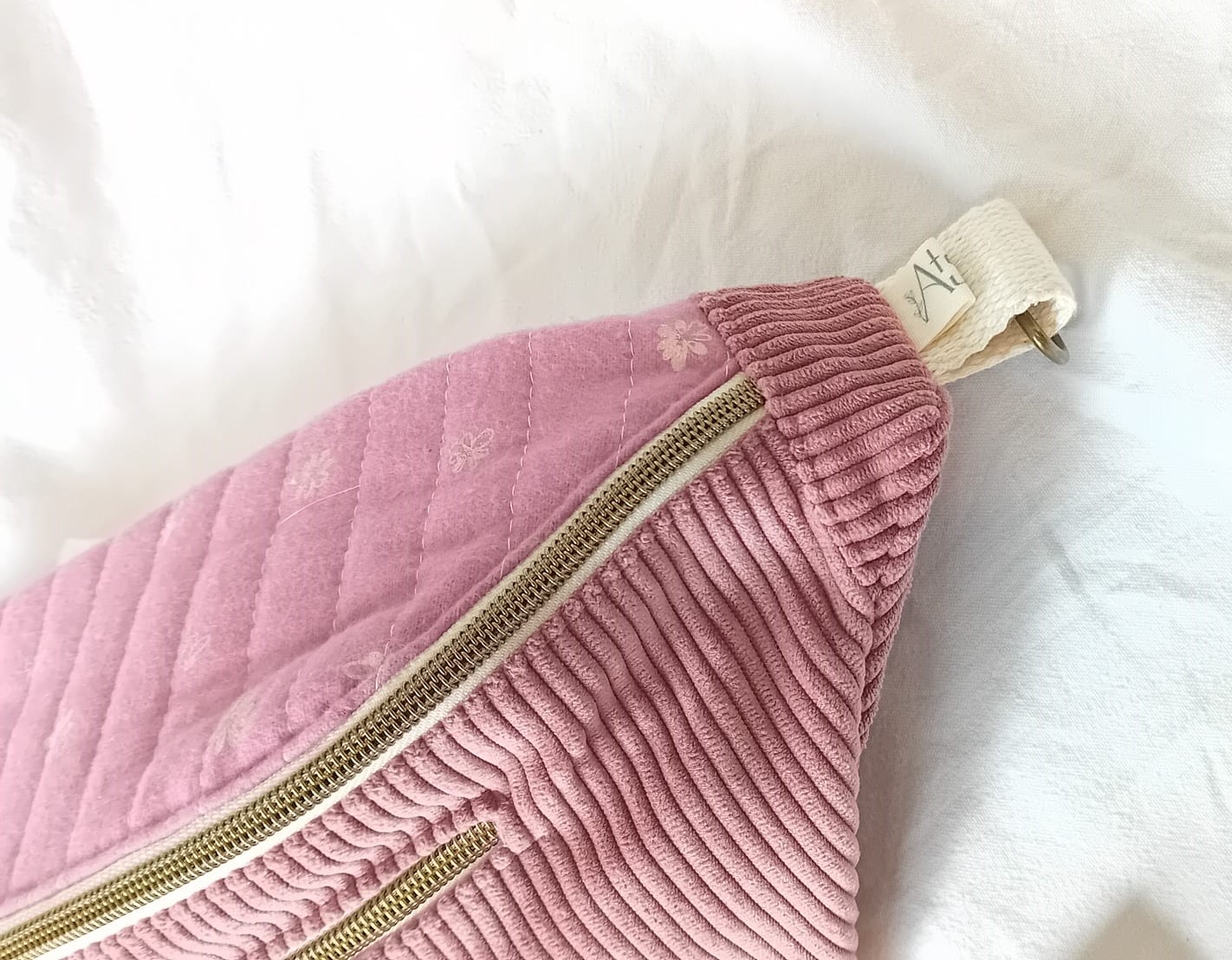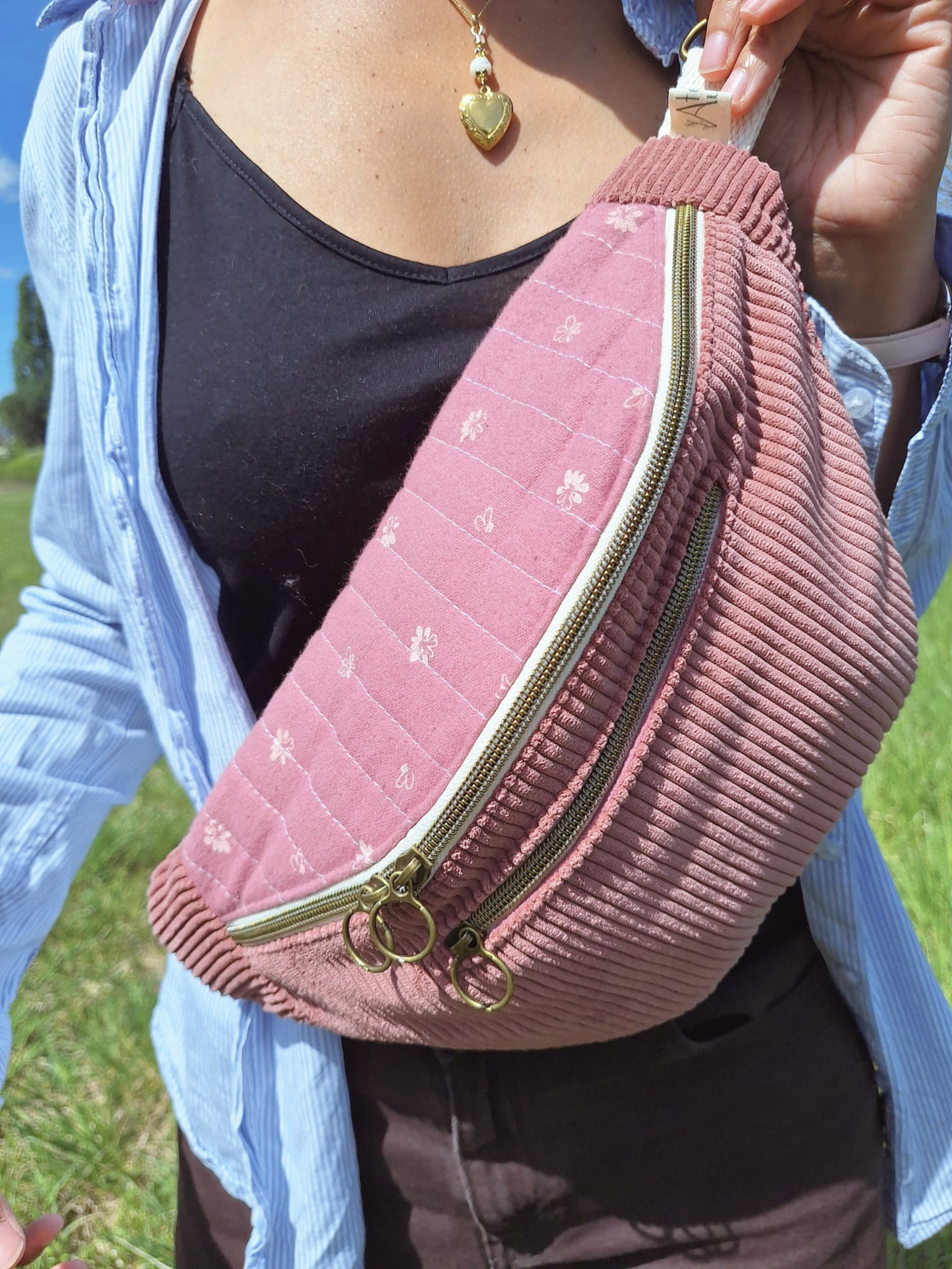 Ce sac banane en velours côtelé rose aux notes fleuris est pensé pour accompagner vos journées avec simplicité et douceur.